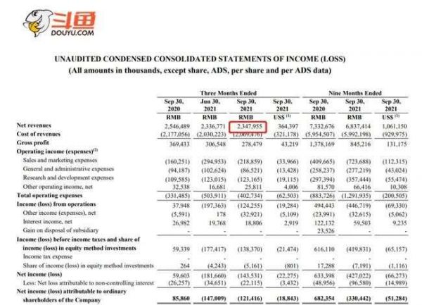 斗鱼的掉队,从数字上清晰可见,近日,斗鱼发布2021年第三季度财报,多项核心数据下滑。