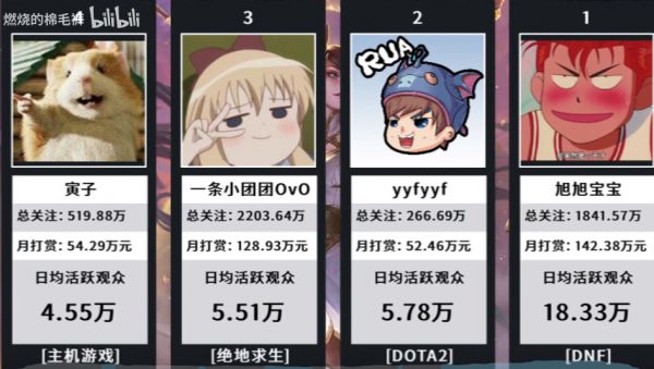 游戏直播的上半场,是得主播者得天下,卢本伟(五五开)、冯提莫、PDD等游戏主播,在全网都有很强的影响力。