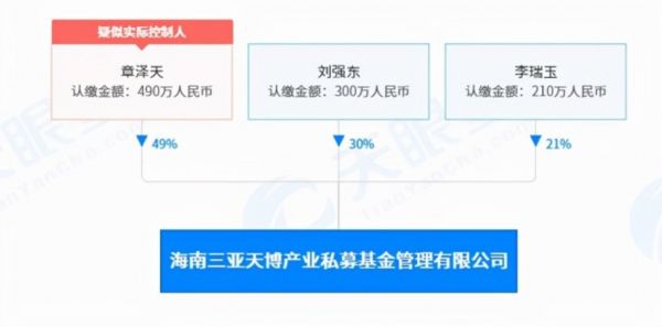 刘强东夫妇成立了一家名为海南三亚天博产业私募基金管理有限公司的私募公司,天眼查显示该公司注册资本1000万元,章泽天为持股49%的大股东。