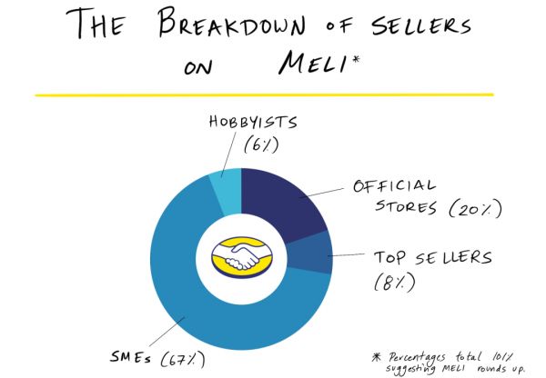 Libre依旧是 Meli 的核心业务,它已经从 eBay 的复制品发展成一个综合电商平台,提供忠诚度计划、免费送货服务和极致的用户体验。在今年第一季度财报中,平台GMV达60亿美元,服务了3600 万买家和 400 万卖家。而且,从GMV构成角度来看也很健康:67% 的 GMV 流向了中小型卖家,这表明 Meli 吸引了大量"长尾"商家。另有 20%GMV 来自大品牌。