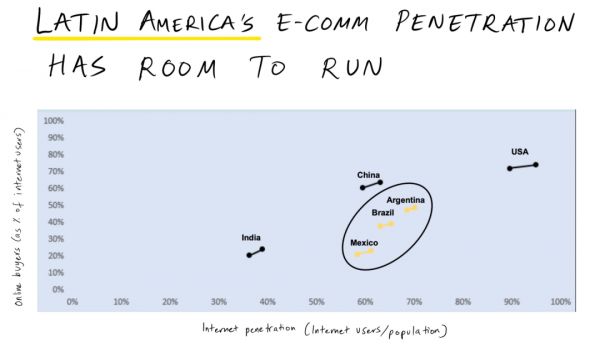 然而,展望未来,拉美看起来是一个增长的市场。虽然巴西和阿根廷等国家的互联网普及率与中国的60%至70%相似,但在线购买的比例要低得多。Meli将相信它可以缩小这一差距,最终达到美国等经济体的水平。
