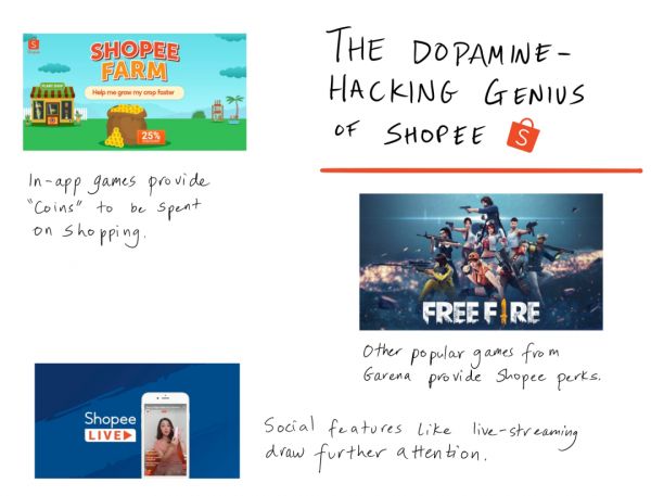 背靠Sea集团,Shopee代表了一种独特又可怕的可能性:由赚钱的游戏业务提供弹药,在市场中烧钱抢占份额,想尽一切办法吸引用户注意力并且留住他们。