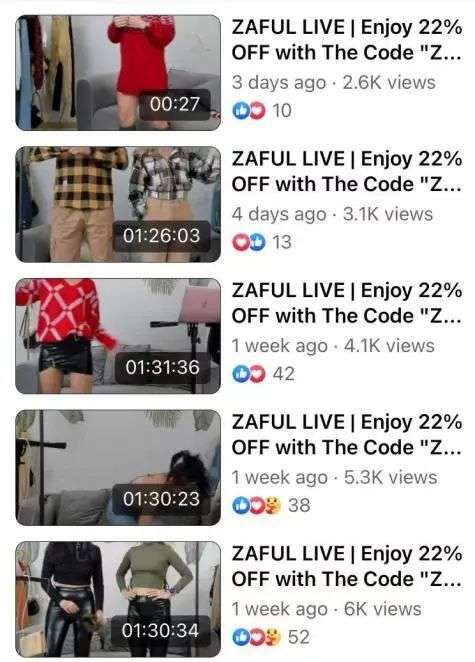 ZAFUL是最早扎入直播的跨境电商品牌之一(2018年)。目前,ZAFUL采用类似国内直播电商的叫卖形式,除借助自有渠道外,还通过海外主流社交平台如Facebook、Instagram、TikTok开设直播入口,实现“Z-Me站内社群+app+社交媒体”的三端同步直播。