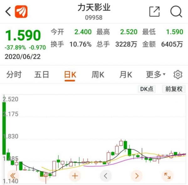 连头部企业都难以幸免,一些中小文娱企业更是刚上市就“凉”了。力天影业曾发行过《漂洋过海来爱你》《卧底归来》《爱国者》等电视剧。2020年6月22日,力天影业正式挂牌,发售价为每股2.56港元,筹资净额约为1.408亿港元。然而,其第一天上市就闪崩暴跌、遭遇破发,当日收盘股价下跌近40%。