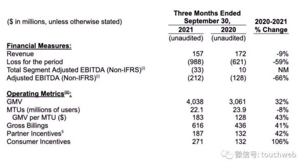 Grab在2021年第三季度净亏损高达9.88亿美元,较上年同期的净亏损6.21亿美元扩大59%;经调整EBITDA为-2.12亿美元,上年同期的经调整EBITDA为-1.28亿美元,同比扩大了66%。