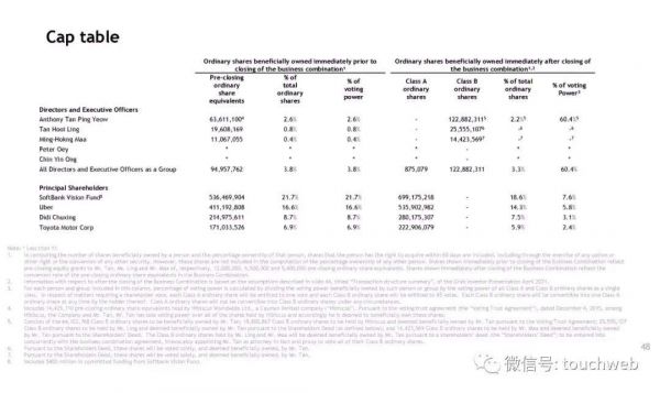 此次交易后,Anthony Tan Ping Yeow持股为2.2%,拥有60.4%的投票权;软银持股为18.6%,有7.6%的投票权;