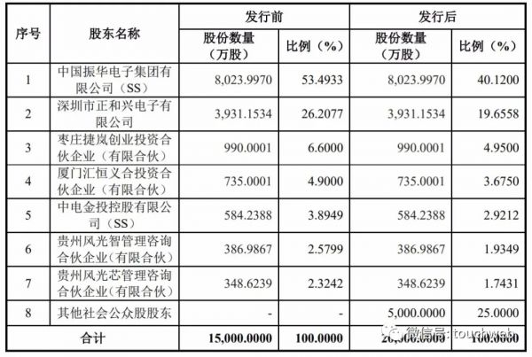 IPO后,中国振华电子集团有限公司(SS)持股为40.12%,深圳市正和兴电子有限公司持股为19.6558%;