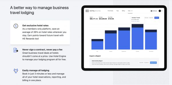Hotel Engine将自己描述为一个“住宿表现网络”。换句话说,这家初创公司是一个只面向会员的B2B全球预订平台,旨在为企业提供更好的住宿价格,以及提供“优化其旅游项目”的工具和见解。与此同时,该公司创始人兼首席执行官Elia Wallen表示,该公司还与住宿供应商(也就是酒店)合作,使这些供应商接触更多“高价值”商务旅行者从而从中获益。