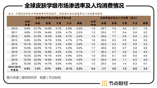 在市场渗透率方面,2019 年中国皮肤学级护肤市场渗透率仅为5.5%,低于全球的 10.3%,更低于欧美等发达国家。