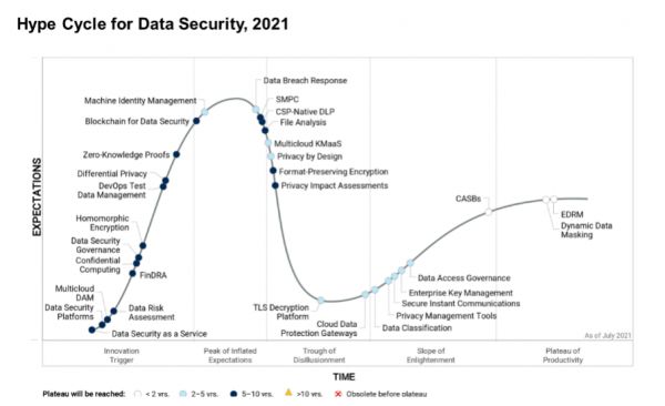 数据安全Hype CyCle(来源:Garnter 2021 数据安全研究报告)