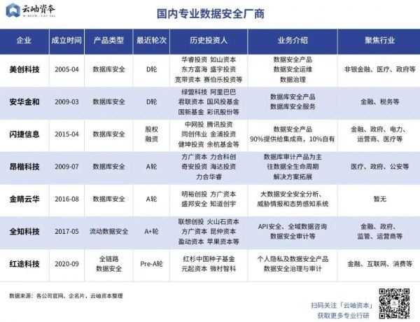 专业数据安全服务商: 数据安全为主业,产品围绕客户需求打造,既有面向等保合规为目的的传统数据库安全业务,也有以数据全域安全以及隐私合规保护的新兴数据安全业务。