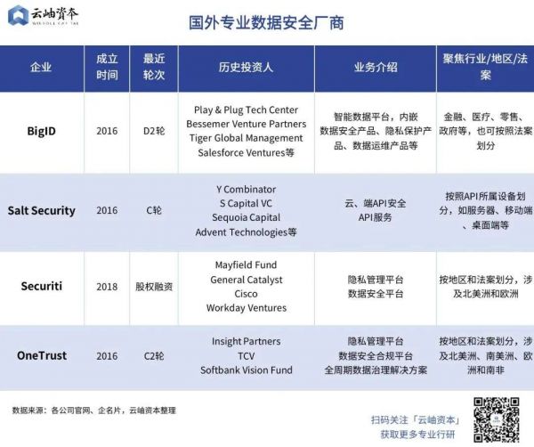 2018年,欧盟正式实施《通用数据保护条例》(GDPR),全球掀起数据安全与隐私的立法热潮,对企业提出了更高的数据安全合规性要求。以合规为核心的新型数安产品在海外受到资本追捧。