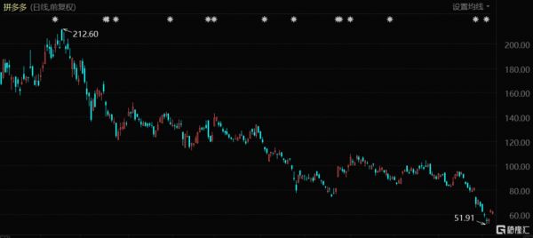 但拼多多市值想要回到2021年2月之前的最高峰——每股212.6美元、3000亿美元市值,仍有非常大的难度。从最高点算起,拼多多股价累计跌幅超过了73%。