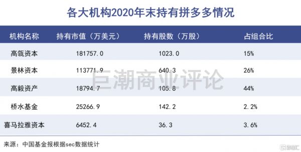 除了高瓴资本、景林、喜马拉雅们之外,曾经重仓拼多多的还有一批大名鼎鼎的名字: