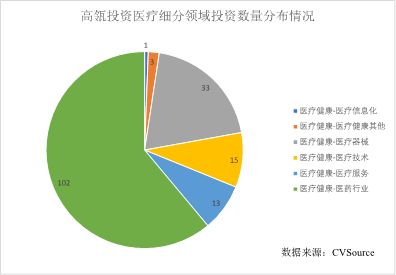 高瓴在医疗健康领域共发生183起投资事件,其中医药行业占比最大,发生102起,其次是医疗器械,发生33起。