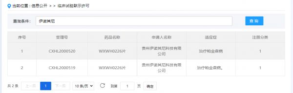 伊诺其尼成立于2018年,公司重点项目是治疗帕金森的小分子创新靶向药物LRRK2抑制剂,该项目研发负责人是中国科学院魏于全院士,四川大学研究员魏霞薇博士负责小分子靶向药研发平台。伊诺其尼LRRK2抑制剂(WXWH0226)的临床前研究由公司与药明康德合作进行,于2020年12月获得临床试验注册批件。当前,已完成临床试验方案设计,进入Ⅰ期临床试验,将与CRO公司国信医药科技合作开展。