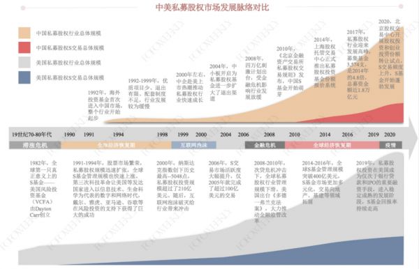在资本市场和整个私募股权投资行业的发展起步时间上,由于中美存在天然的“时间差”,以及经济水平和资本市场完善程度的整体差异,中国现阶段的S市场与美国相比还存在规模较小,阶段初级,交易类型较少等特点;同时,由于不同时空背景下,随着政策的导向变化,科技的发展以及行业整体生态趋于完善,使得中国的私募股权市场相较于美国同期表现出更强的发展加速度。