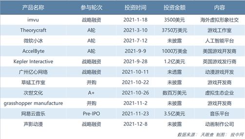 3.网易资本在今年也搭上了元宇宙的车,从投资专注以虚拟形象形式进行社交的海外平台imvu到专注跨次元内容开发及运营的次世文化。