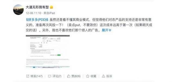 “但拼多多对农产品的支持还是非常有意义的”,自称仍看不懂拼多多商业模式的段永平这样补充道。押宝农业,能成为拯救拼多多股价的良药吗?