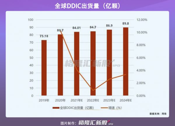 伴随消费电子的需求激增,2020年,全球显示驱动芯片需求量达80.7亿颗,未来终端应用市场需求将持续强劲,预计到2024年,全球显示驱动芯片需求量或达89.8亿颗。