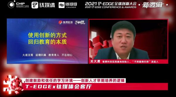 12月10日,在钛媒体集团联合大兴区产促中心、国家新媒体产业基地共同主办的“2021 T-EDGE全球创新大会”上,智勇科创实践基地创始人、“不刷题俱乐部”发起人关大勇做客钛媒体会客厅,以其十几年来在实践教学方面的经验,给出了自己的答案。