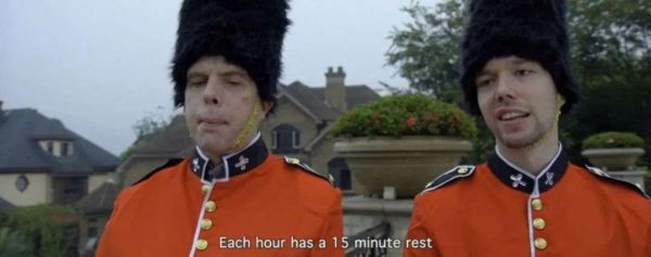 他们不需要任何排练,也不需要演奏技巧,只要穿上宽松衬衫、戴上草帽,在舞台上扭动一会儿,一场由「著名乐队」带来的美国乡村布鲁斯演奏会就完成了。他们不需要经过选拔,也不用任何军训,穿上拙劣的山寨服装,就能在任意一个刚建好的楼盘里,带来一场「英国皇家仪仗队」的开幕式表演。