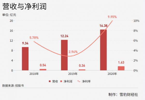 2018年至2020年,雍禾医疗的营收逐年攀升,同期净利润分别为0.54亿、0.36亿和1.63亿元,净利率最高不超过10%;2021年上半年,营收10.53亿元,净利润0.4亿元,净利率不足4%。