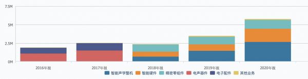 歌尔股份近五年营收构成 来源:Wind