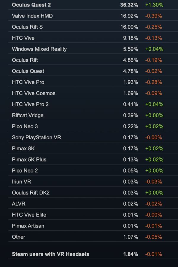 考虑到VR的C端应用还仅限于游戏,渗透率可以通过全球最大的游戏发行平台Steam的VR玩家占比来初步推算。