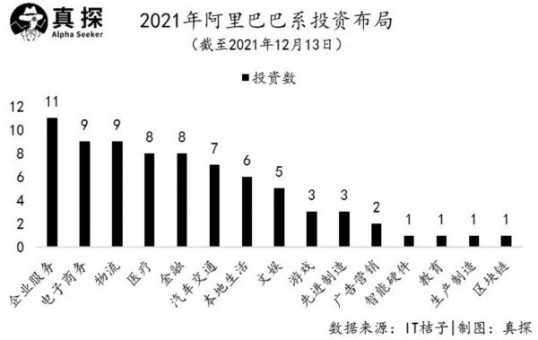 IT桔子数据显示,阿里系(主体包括阿里巴巴、阿里健康、蚂蚁金服、阿里云、钉钉、菜鸟网络,以及阿里巴巴创业者基金和eWTP基金)今年共投资74家公司,高于2020年的57家,但低于2015年以来其他年份。
