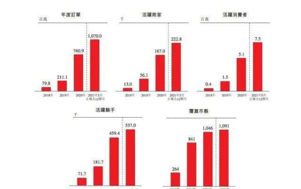 据统计,截至2021年5月31日,其累计服务超过2000名品牌客户和超过53万注册商家,个人注册用户达1.26亿名,注册骑手280万名;平均配送时长约为30分钟,订单时效达标率超过95%。
