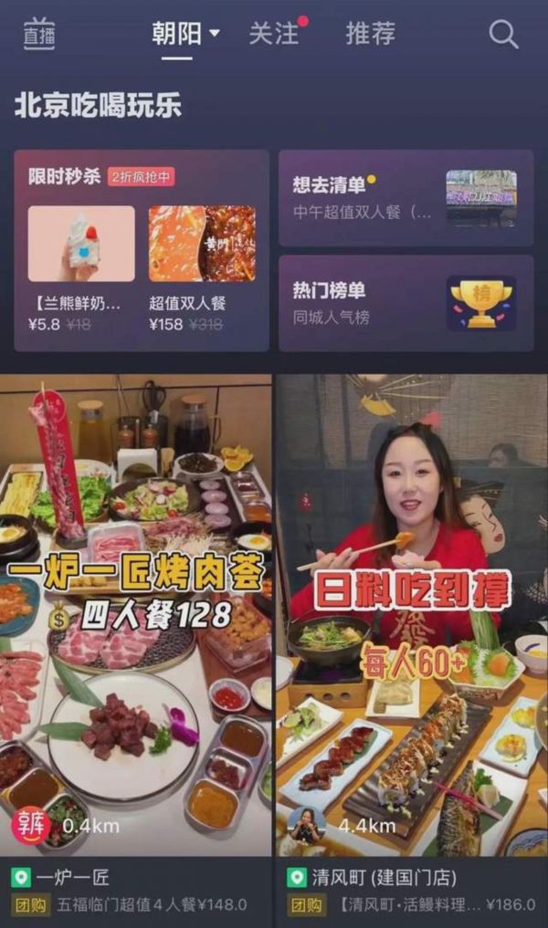 去年以来,抖音大力布局本地生活业务,在同城频道增设了“吃喝玩乐”板块,并上线“热门榜单”和“优惠团购”等功能,邀请了大量商家入驻。今年上半年,抖音正式推出“抖音探店团”,对探店团购达人进行流量扶持和带货分佣。