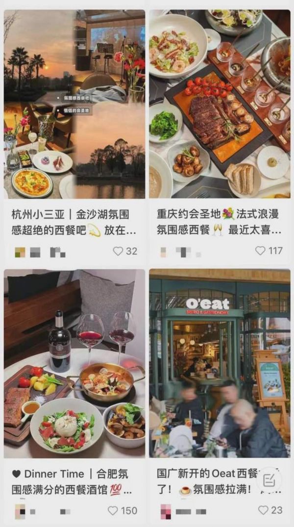 在小红书,“氛围感”成了西餐厅的标配 来源 / 小红书