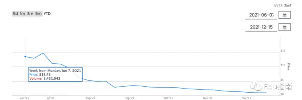 然而国内双减新规于其后一个月发布,明确要求禁止义务教育阶段培训营利性经营。随后,以义务教育阶段为主营业务的上市公司,市值暴跌,不乏跌去90%以上市值。掌门教育即是其中之一。
