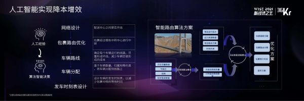 比如人工智能,人工智能在我们行业里面天然具有应用的土壤,比如智能路由,这种项目我们已经取得一点点效益,但是路还很长。路由的一些算法我觉得不能只停留在实验室里面,还要能够很好的把它推广落地,要跟我们的实际场景相吻合,比如中心的吞吐量、停靠的时间班次、商家的发货时间、流量流向等等,路由在这方面起到的价值还是很大的。