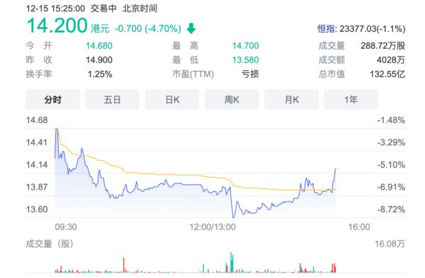 上市首日顺丰同城迎来破发,跌幅超7%,截止12月15日,顺丰同城每股报收14.2港元,跌幅一度超10%,总市值132.55亿。