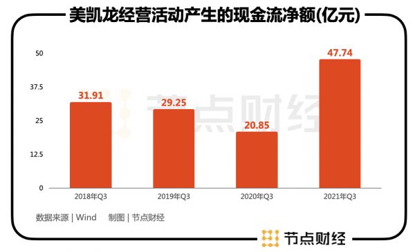 另外,一家公司能否正常运转,现金流至关重要,这一点美凯龙目前的数据也不错。截至今年三季度,其经营活动产生的现金流净额为47.74亿元,去年同期为20.85亿元,翻了一倍多。