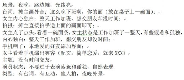 短视频信息流广告的脚本模板,图由受访者提供