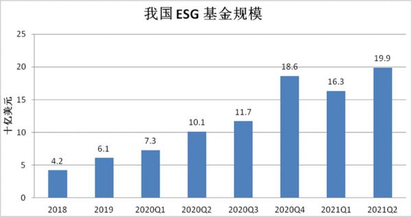 根据Bloomberg的统计数据,截至今年上半年,我国ESG基金在管资产规模已达到199亿美元,比去年同期翻了近一倍。