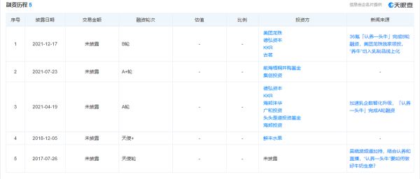 据松果财经获悉,乳业新品牌「认养一头牛」已完成B轮融资。本轮融资由美团龙珠领投,包括DCP、KKR、古茗等新老股东跟投,明越资本担任独家财务顾问。