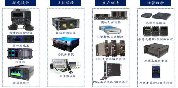 其中研发和设计环节由于技术要求较高,往往对仪器的要求也较高,通常会用到高性能网络分析仪、频谱分析仪、示波器等;