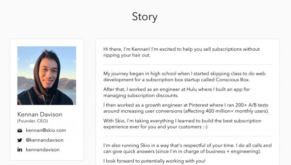 Davison在订阅方面的经历要追溯到高中时期。他说,当时他开始逃课,为一家名为Conscious Box的订阅盒初创公司做网络开发。之后,他在Hulu担任工程师,在那里他开发了一个管理订阅折扣的应用程序。他之后是Pinterest的增长工程师,他说自己在Pinterest进行了200多次A/B测试,以提高用户转化率。