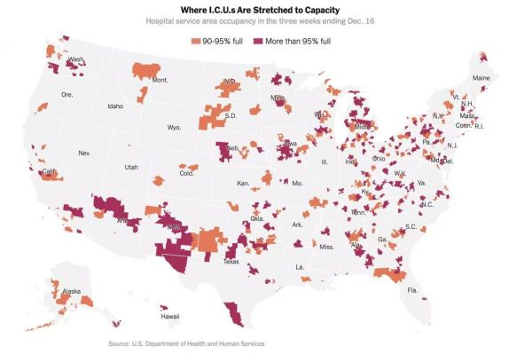 但真正的危险在于,美国医院已经有近 90% 的负荷量。不少医疗人士预测,接下来的一个月,将会是最艰难的一个月。