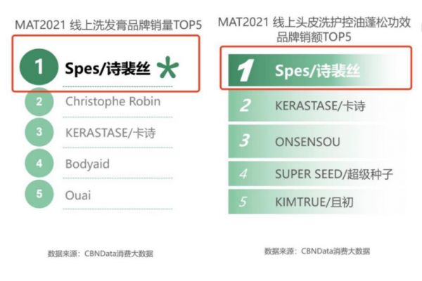 第一财经商业数据中心(CBNData)2021年10月发布的《2021国民头皮健康白皮书》显示,Spes 已位居“控油蓬松功效品牌 TOP1”和“洗发膏品牌销量 TOP1”,并在“头皮洗护品牌消费”排名中位居国货品牌第一。