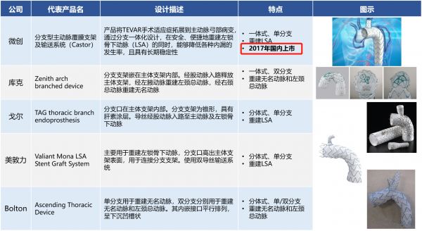 胸主动脉弓分支支架在研及上市产品,36氪整理