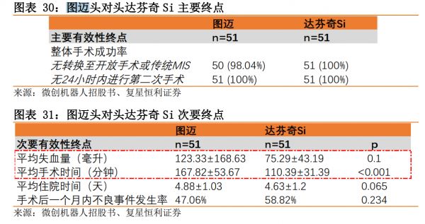 图迈手术机器人与达芬奇Si的头对头试验结果