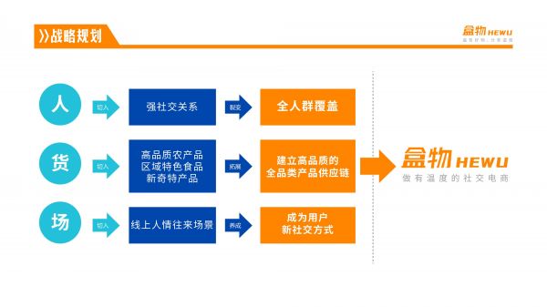 「盒物」正式运营于2021年6月,是一家主打线上人情往来的社交电商,以农副产品为主、人情社交往来为切入口,通过用户“自用+赠礼提货券”的社交关系实现裂变,目前已上线小程序「盒物」,app端正在规划中。