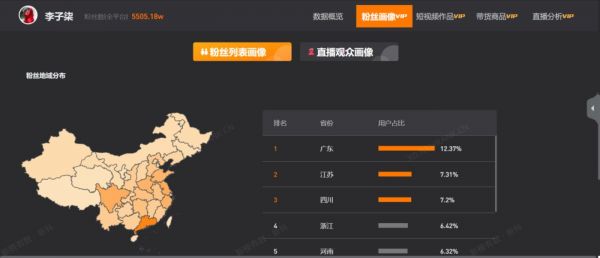 李子柒抖音粉丝思域分布情况,图/新抖