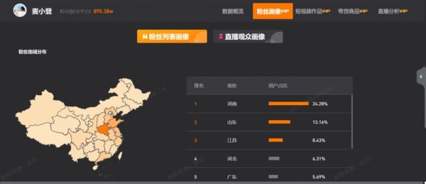 麦小登抖音粉丝思域分布情况,图/新抖