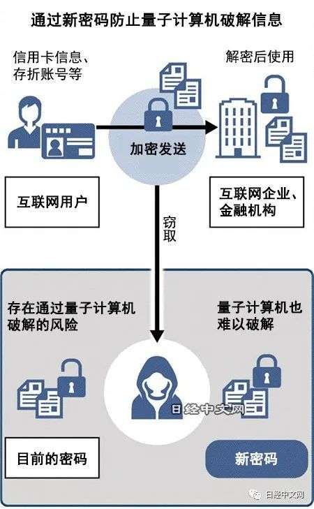 加密就是把想要发送的信息转换成为第三方无法解读的形式,确保通信的隐秘性。随着网络的普及,已经成为支撑企业活动和民众生活安全的基础。量子计算机将会对其构成威胁。目前即使是速度最快的超级计算机,想把密码破解出来也要运行好多年。而量子计算机虽然现在还不能破解,但如果再进一步发展下去,就有可能具备破解能力。